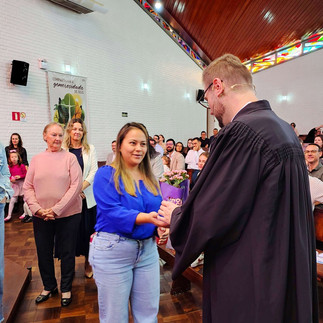 Neste domingo (11.05) o Culto na Igreja de Cristo foi especial para as mamães. Celebrado pelo Pastor Henrique Arnold, na manhã, contou com batismo de quatro bebês, Culto Infantil e uma meditação especial para as mães. No fim, a mãe mais idosa e a mãe mais nova presentes nos Cultos da manhã e noite, receberam uma flor de presente. Agradecemos a presença e desejamos um abençoado Feliz Dia das Mães para todas!