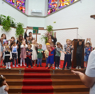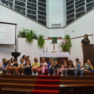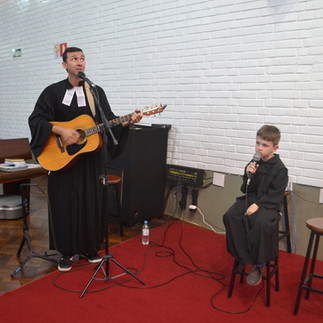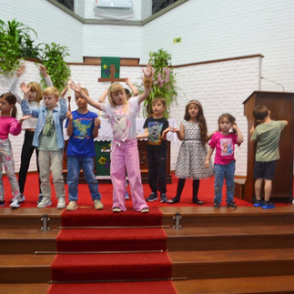 As orientadoras do Culto Infantil, acompanhadas pela Pastora Alessandra, contaram e interpretaram a história "A menina do vestido azul" de Cleibiana Seibel, além disso, músicas com gestos foram cantadas e tocadas pelo Pastor Mauro, onde todos foram incentivados a participar. Ainda pela manhã, ocorreram Batismos, no momento de entrega e consagração diante de Deus, que marcou o início da caminhada de fé para os bebês.