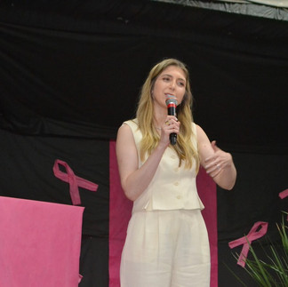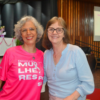 O evento também abriu espaço para relatos emocionantes de mulheres que enfrentaram o câncer de mama. Entre os depoimentos, um dos que impactou o público foi o da professora Roseli H. Kussler, de 53 anos. Ela descobriu o câncer precocemente após ser alertada por uma aluna do Colégio Evangélico Alberto Torres (Ceat), onde leciona alemão. "Uma simples fala da aluna mudou minha vida. Fiz os exames e, graças ao diagnóstico precoce, fiz cirurgia para remoção e radioterapia. Hoje, falo sobre o tema com quem eu puder. Às vezes, uma palavra pode fazer toda a diferença", relatou Roseli, reforçando a importância da campanha e também agradecendo todas as orações que recebeu após o diagnóstico.