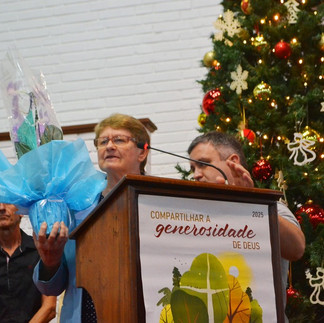 Momento de despedir e também de agradecer e reconhecer o trabalho realizado pela Pastora. O Presidente, Wilson Henn, destaca que se tem um sentimento de gratidão em relação ao trabalho que desenvolveu em Lajeado a partir dos dons de Deus que colocou à disposição dos membros da comunidade. Wilson convidou os representantes de todos os grupos e setores para prestarem suas homenagens no altar. “Expressamos gratidão, de forma comunitária como comunidade, pelo empenho e dedicação da Pastora, que colocou seus sons à serviço da comunidade”.