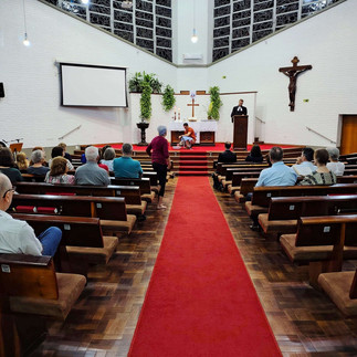 Na noite de quinta-feira (17.04) ocorreu na Igreja de Cristo o Culto de Quinta-feira Santa com Santa Ceia. A celebração foi realizada pelos Pastores Alessandra Bourscheidt Alves, Henrique Arnold e Mauro Campagnoni Alves, que lembraram o ato de Jesus, quando lavou os pés dos discípulos, expressando extrema humildade, atitude de serviço, amor e caridade fraterna. A música ficou por conta do Alexsander Jost e o Culto Infantil com as orientadoras Isabel e Renata, que também fizeram o lava-pés com as crianças. No Culto se refletiu que possam olhar e reconhecer que o servir com amor tem o poder de mudar situações, transformar pessoas e relações. O Culto encerrou com todos os objetos sendo retirados do altar e a igreja ficando em pleno escuro. Nesta sexta-feira (18.04) terá Culto às 19h.